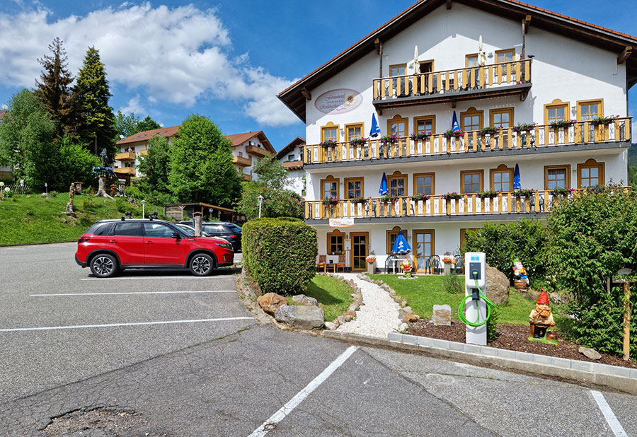 Since August 2022 we have been providing you with a car charging column. You can get the card to activate the charging station at reception. Billing at €0.48/kWh is carried out conveniently via your room account.