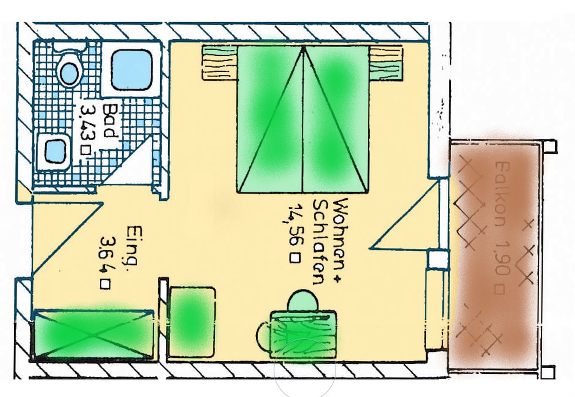 Bei der Anreise ist das Zimmer ab 14 Uhr bezugsfertig